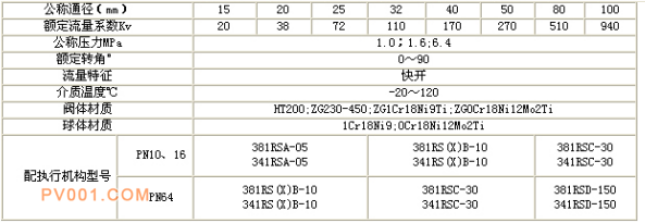 调节机构主要技术参数