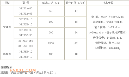 角行程电动执行机构主要技术参数