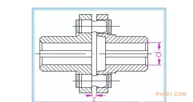 注:为补偿较大的△x,安装时要留出间隙C,设计时要留出距离A,以便更换橡胶圈时不必拆开两轴。