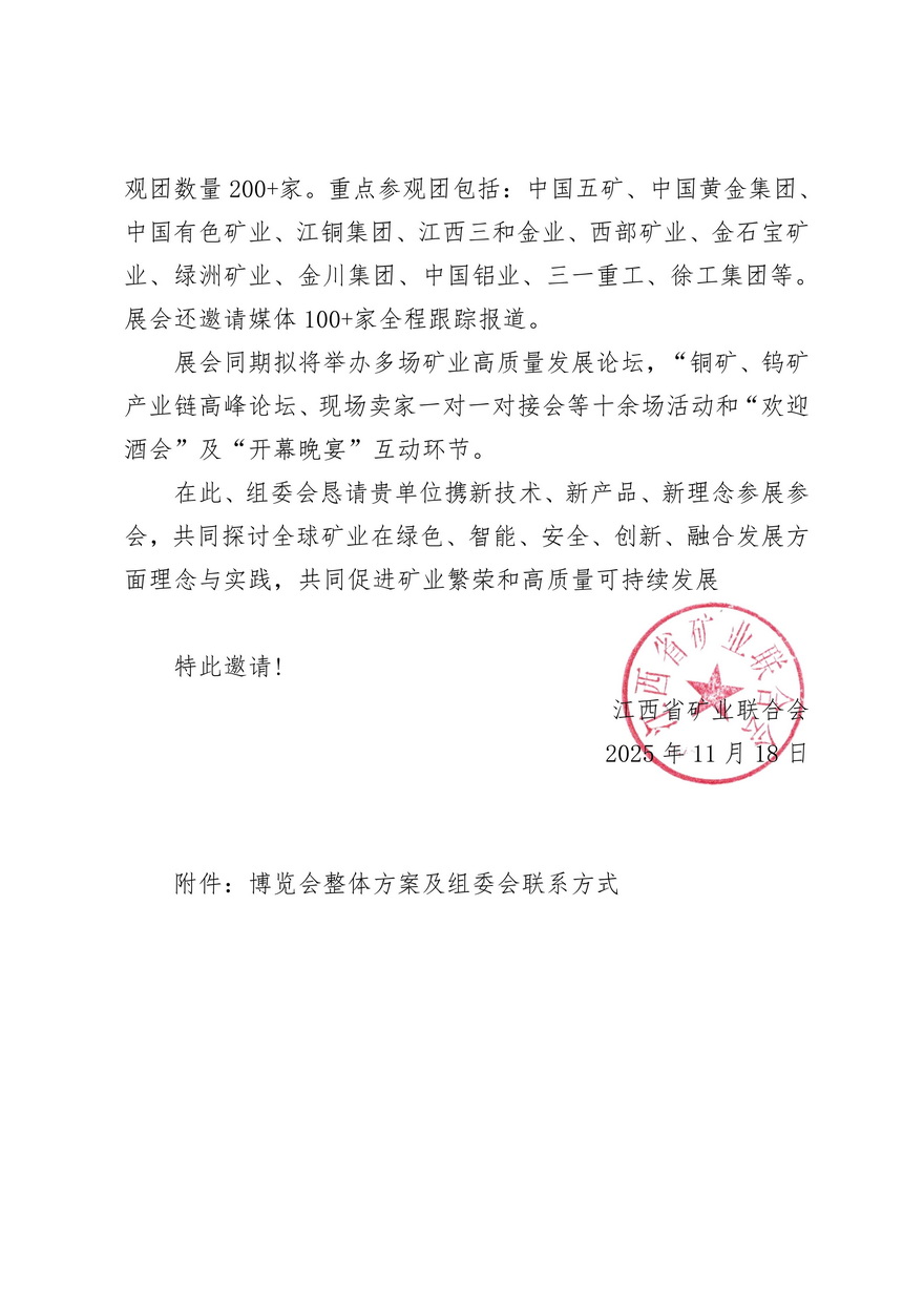 在此、组委会恳请贵单位携新技术、新产品、新理念参展参会,共同探讨全球矿业在绿色、智能、安全、创新、融合发展方面理念与实践,共同促进矿业繁荣和高质量可持续发展。