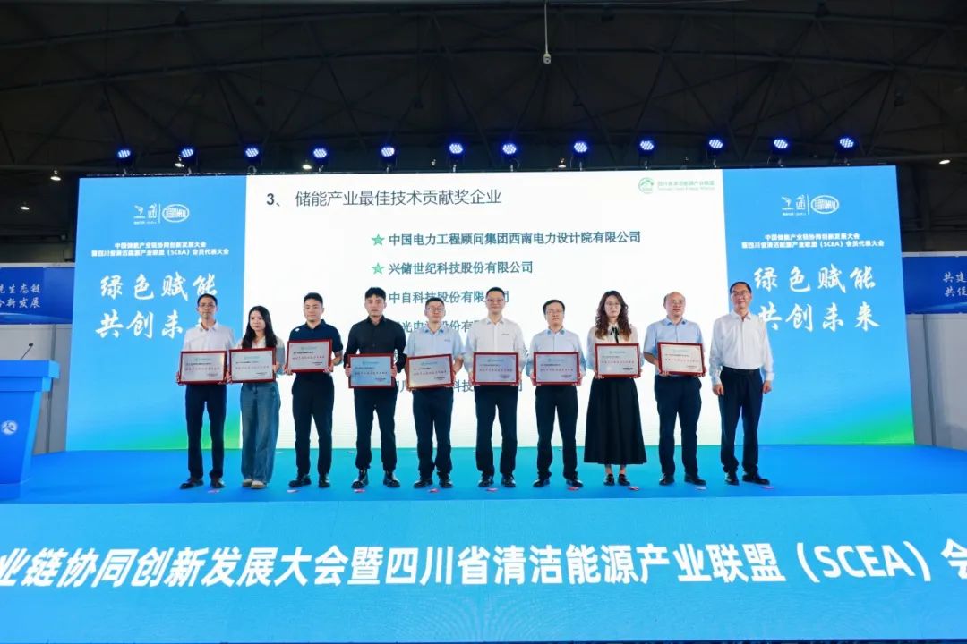 本届博览会期间还同时举办第三届中国国际储能产业博览会及四川省清洁能源产业联盟会员颁奖仪式,国网四川综合能源服务有限公司、华电四川公司、晟天新能源、国家能源集团四川发电有限公司、航微能源、中电建四川工程公司、成都振威世展展览有限公司等数十家企业获奖。广东迪度新能源有限公司获得储能技术卓越奖,成都西电中特电气有限责任公司获得储能明星产品奖,光储充领航企业奖获奖企业为新亚东方电能科技有限公司、郑州众智科技股份有限公司、杭州超翔科技有限公司,光伏应用奖获奖企业为成都忠合创能金属制品有限公司。通过现场奖项颁布,树立储能技术和应用的创新典范,展示储能领域年度内创新技术、产品的应用,推动储能全产业链转型升级与高质量发展。