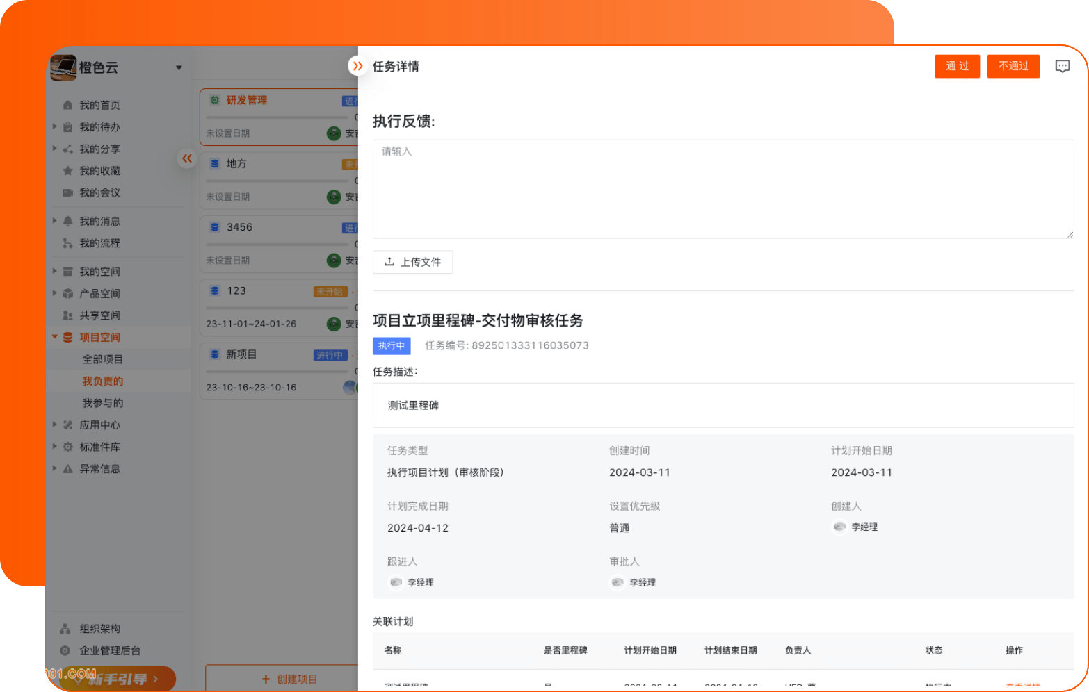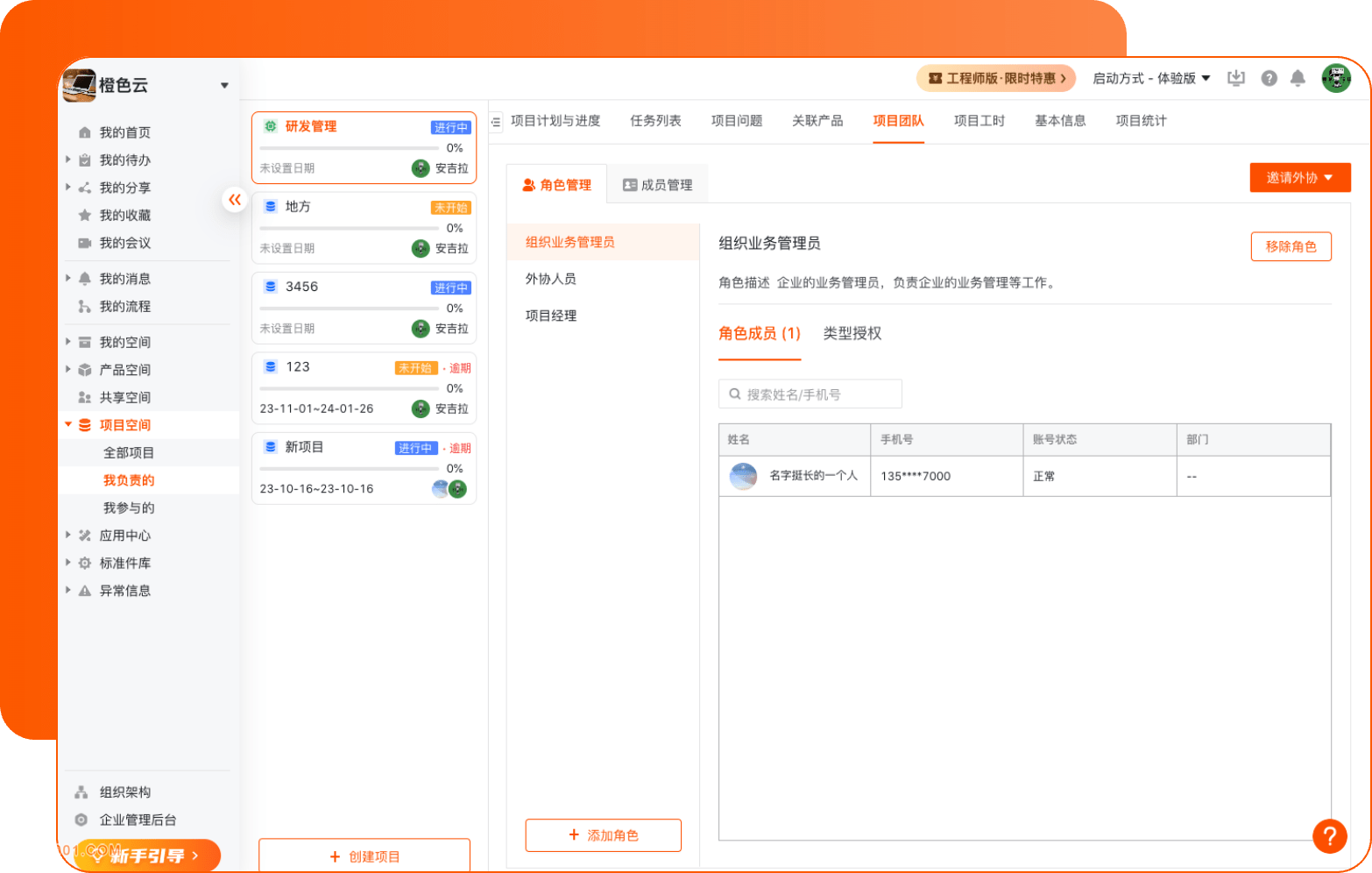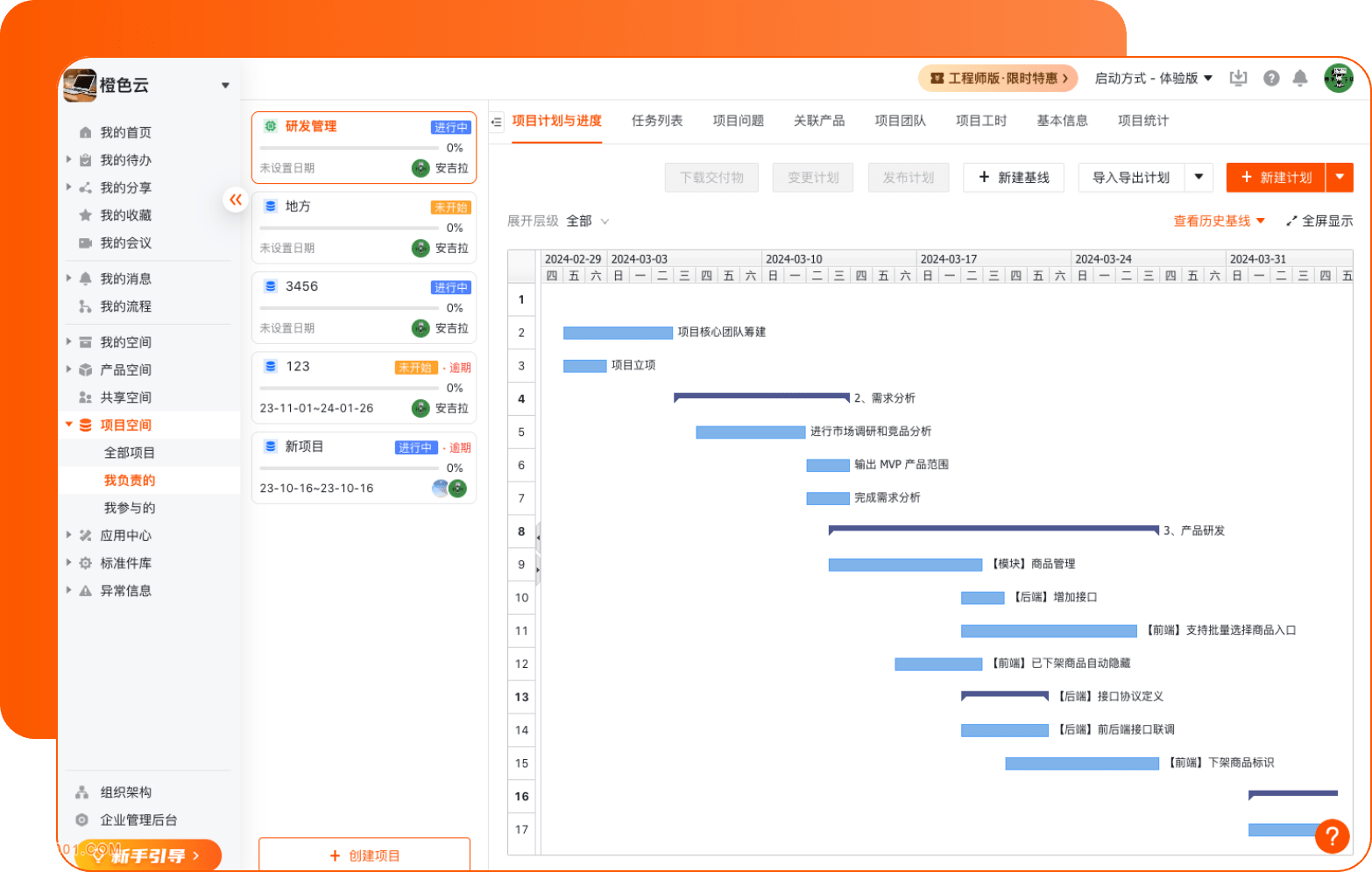 提供不同维度的项目数据统计,便于进行总结和分析,同时也可以快速进入相应工作区,进行工作开展。