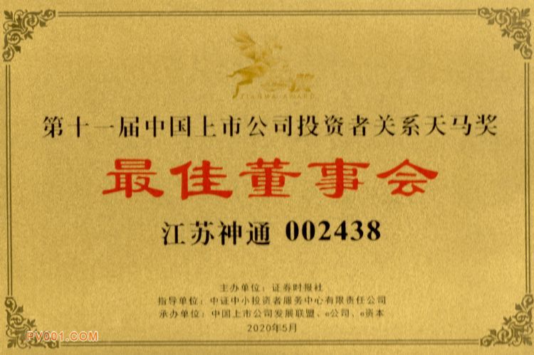 近日,在由证券时报社主办的“第十一届中国上市公司投资者关系天马奖”评选活动中,江苏神通阀门公司董事会荣获“中小板上市公司最佳董事会奖”。