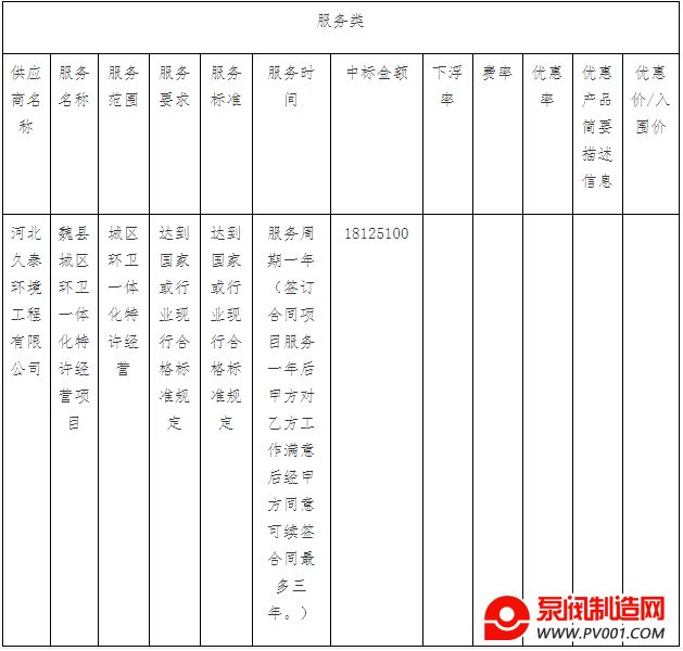 二、项目名称:魏县城区环卫一体化特许经营项目