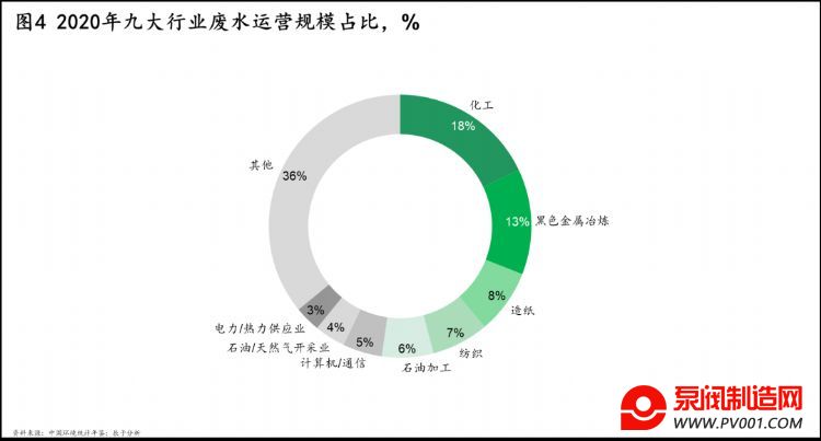我国工业废水上游行业相当分散,即使是运营规模最大的化工行业,其占比也只有18%(如图4)。