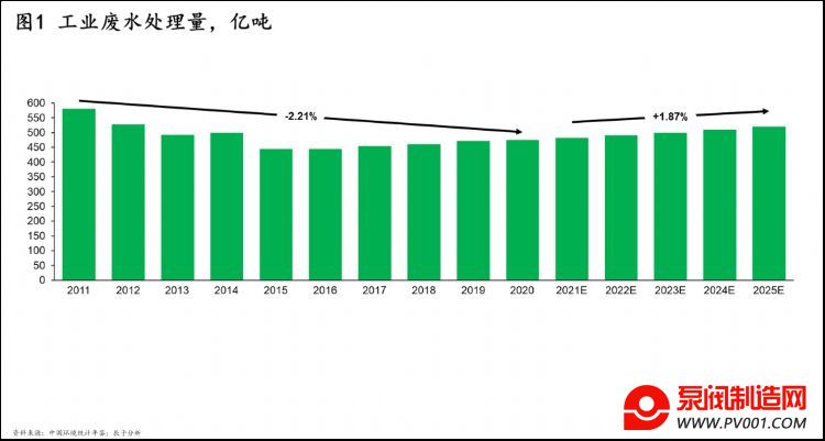 驱动力一:我国工业废水处理量将以1.87%的复合增速缓慢增长