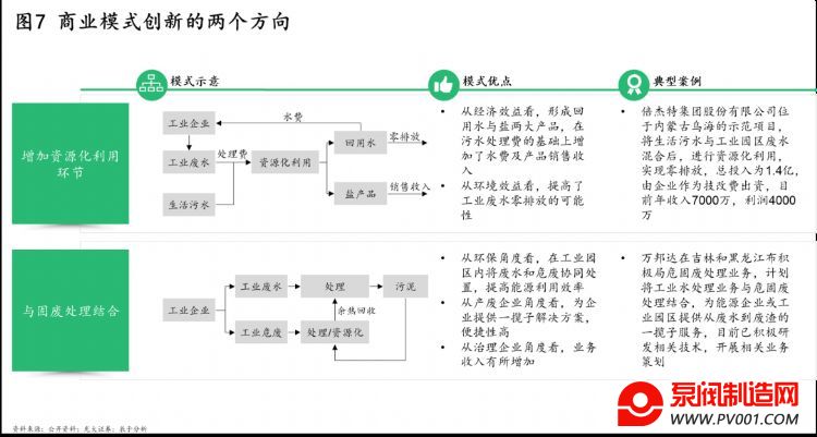 二是将工业废水处理与工业园区的固废处理相结合,通过余热回收等方式,达到协同处置的目的。从环保角度看,在工业园区内将废水和固废协同处置,能够提高能源利用效率;从产废企业角度看,该模式为企业提供一揽子解决方案,便捷性高;从治理企业角度看,增加了固废处置收入。例如,苏伊士打造的工业园区循环经济模式,为工业园区提供从工业供水厂、工业污水厂的设计、建造和运营到有害废物处理的全面解决方案,在上海化工园区、常熟新材料产业园等落地应用;国内企业如万邦达也在吉林和黑龙江等地积极布局危固废处理业务,计划将工业废水处理业务与危固废处理结合,为能源企业或工业园区提供从废水到废渣的一揽子服务,目前已积极研发相关技术,开展相关业务策划。
