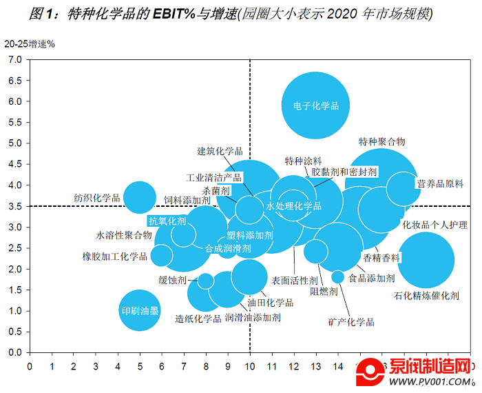 特种化学品行业现在正试图通过提高价格来弥补更高的研发成本以及原材料成本来提高利润率。这种趋势在粘合剂和密封剂、油漆、塑料添加剂、纸张和水处理化学品、表面活性剂和润滑剂方面会较为明显,食品添加剂、香精香料和电子化学品的原料成本占比较小,定价压力不大。