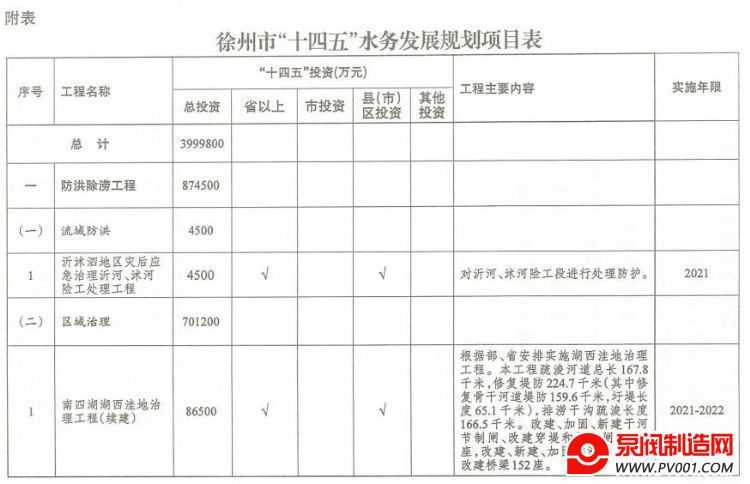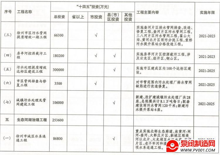 近日,徐州市人民政府印发《徐州市“十四五”水务发展规划》,规划涉及包括城市排水和污水处理工程在内的水务工程七大项,总投资近40亿元。