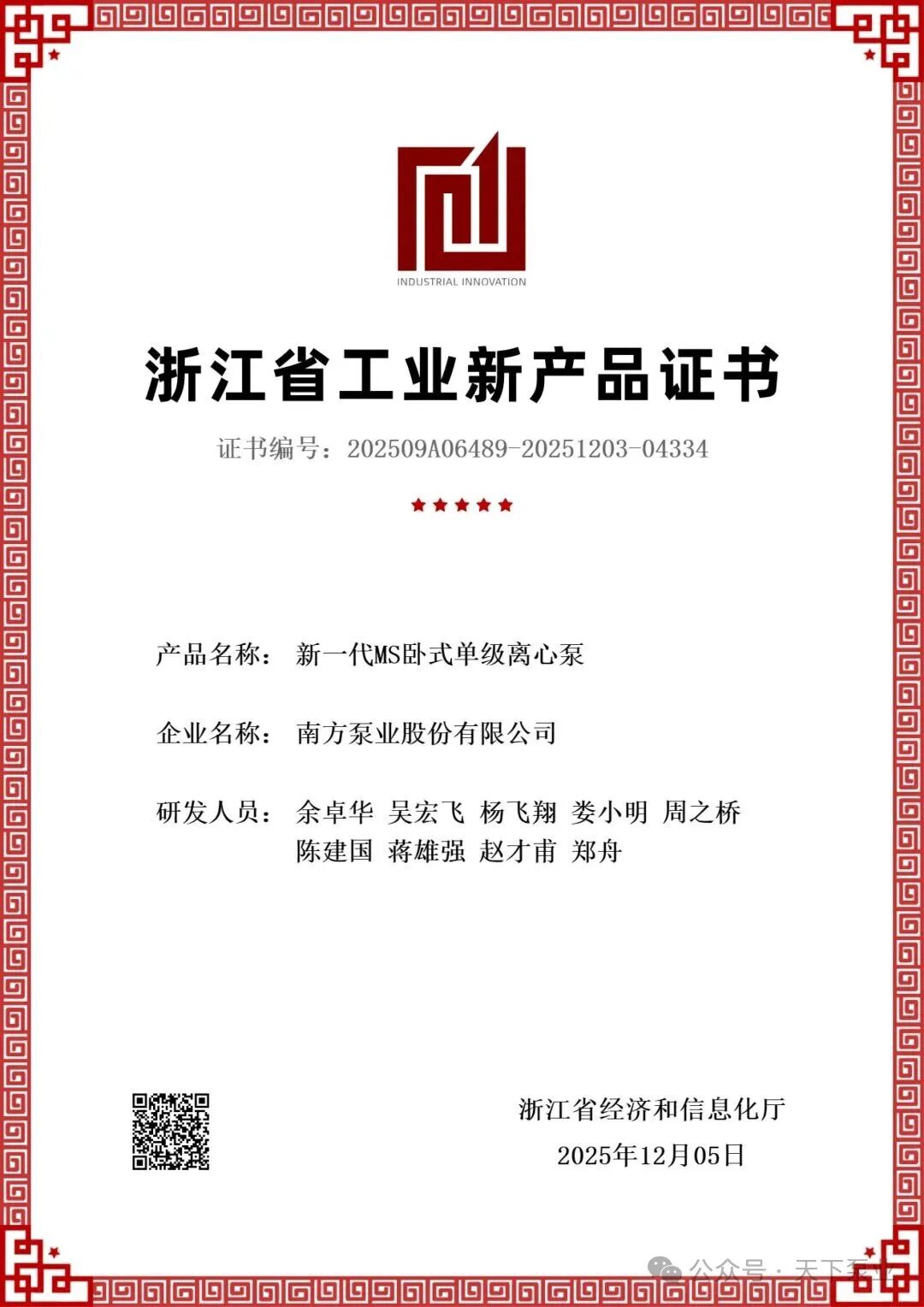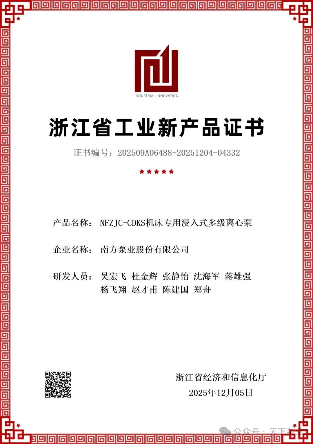 南方泵业将坚定不移地走高效节能、可靠优质的产品发展道路,以技术创新驱动企业向节能化、系统化、智能化深度转型,加快新质生产力培育步伐,不断推进产业升级与结构优化,为实现“全球节能泵及绿色方案领军者”的美好愿景而不懈奋斗。