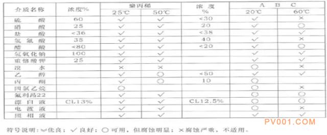 答:可选用工程塑料(增强聚丙烯)泵,工程塑料泵可输送的介质范围如下: