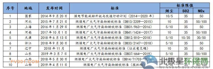 2015年12月环境保护部、国家发改委、能源局联合印发《全面实施燃煤电厂超低排放和节能改造工作方案》(环发[2015]164号),将“燃煤电厂超低排放与节能改造”提升为国家专项行动,即到2020年,全国所有具备改造条件的燃煤电厂力争实现超低排放(即在基准含氧量6%条件下, 烟尘、SO2、NOx排放浓度分别不高于10、35、50mg/m3),全国有条件的新建燃煤发电机组达到超低排放水平。