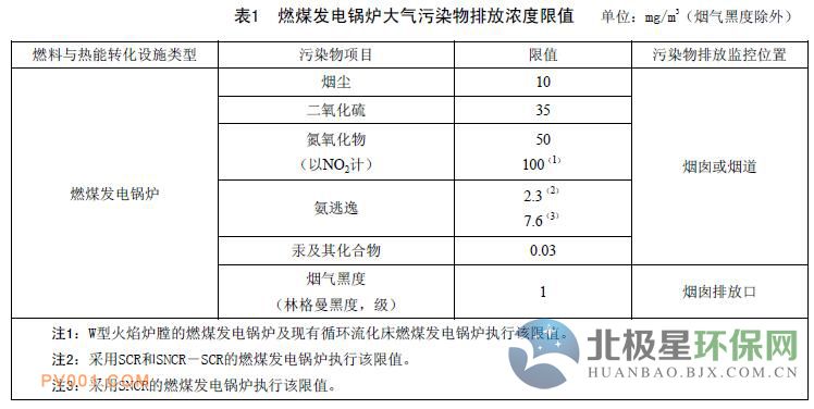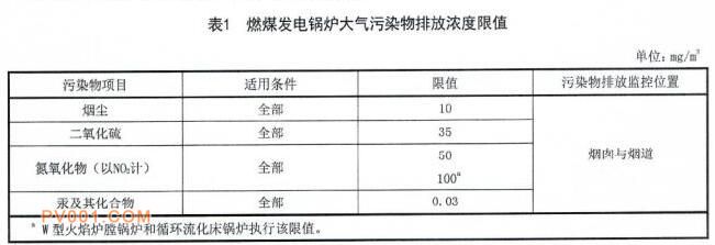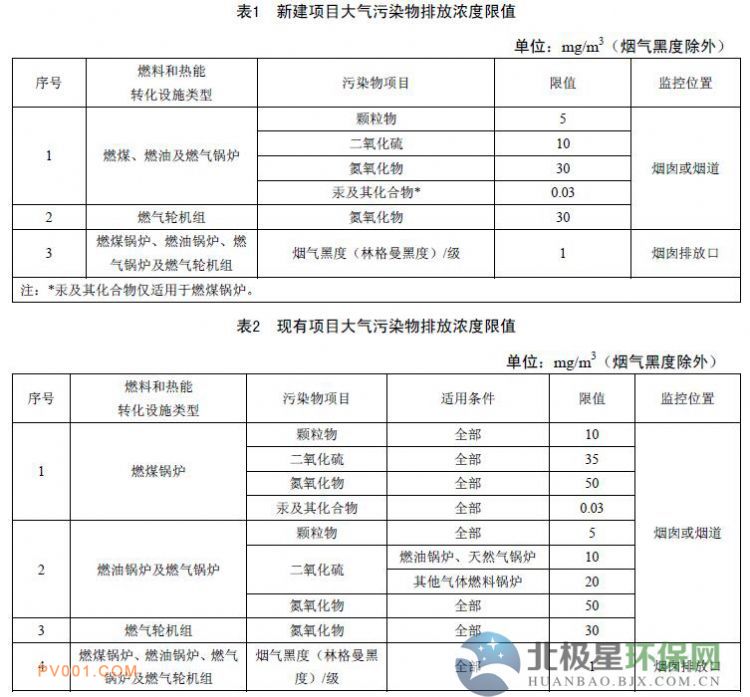 1、自本标准实施之日起,新建火力发电锅炉、燃气轮机组及65t/h以上燃煤非发电锅炉执行本标准表1规定的排放浓度限值。
