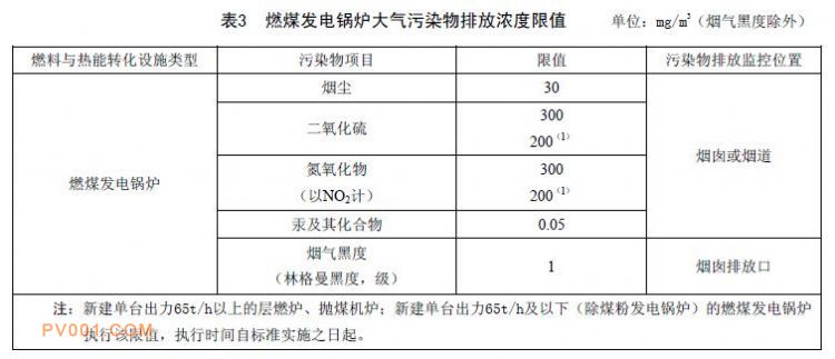自2016 年1 月1 日起,现有及新建单台出力65t/h 以上的层燃炉、抛煤机炉;现有及新建单台出力65t/h 及以下(除煤粉发电锅炉)的燃煤发电锅炉执行表3 规定的排放限值。