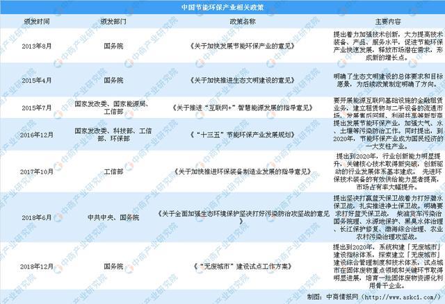 节能环保产业是一个应时代需求而生的新兴产业,几乎渗透于经济活动的所有领域,它以有效缓解我国经济社会发展所面临的资源、环境瓶颈制约为目标,力促产业结构升级和经济发展方式转变。自2013年国家相关部门出台了一系列政策,鼓励节能环保产业发展。2016年《“十三五”节能环保产业发展规划》明确提出了主要目标,到2020年,节能环保产业快速发展、质量效益显著提升,高效节能环保产品市场占有率明显提高,一批关键核心技术取得突破,有利于节能环保产业发展的制度政策体系基本形成,节能环保产业成为国民经济的一大支柱产业。2017年10月,工信部发文,加快推进环保装备制造业发展。2018年,国家统计局将节能环保产业定义为战略新兴产业。