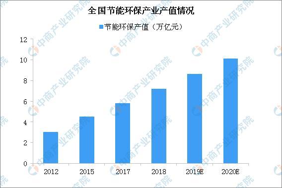 近年来,受国家加快推动生态文明建设、多个循环经济领域示范试点创建实施以及社会公众节能环保意识提高等多因素推动,中国节能环保产业快速增长,总产值从2012年的约3万亿元增长至2015年的约4.5万亿元。2017年节能环保产业产值5.8万亿,2018年突破7万亿元。随着环保税、排污许可制等政策法规的不断加码,我国节能环保产业市场空间未来还将持续扩大。预计2020年节能环保产业产值有望突破10万亿元。