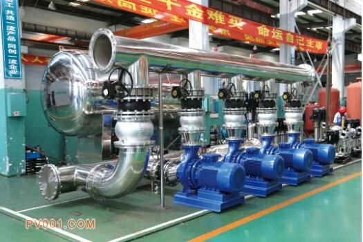 此套无负压供水设备占地不超过25平方米,供水量接近每天25000立方,可以满足30000人每天的用水量。