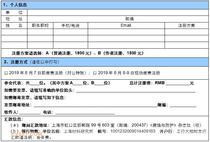 提前注册:请填写回执表,发送至huiyi@mat-test.com或者关注“腐蚀与防护”微信公众号,在线报名