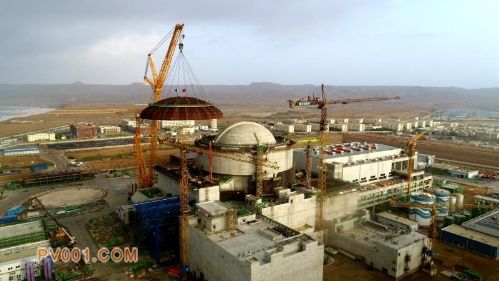 6月17日8点06分,我国自主三代核电华龙一号海外首堆工程——中核集团巴基斯坦卡拉奇核电K-2机组外层安全壳穹顶成功吊装。外层安全壳穹顶成功吊装标志着核电站主体结构工程结束,为后续安全壳整体试验和热试创造了有利条件。