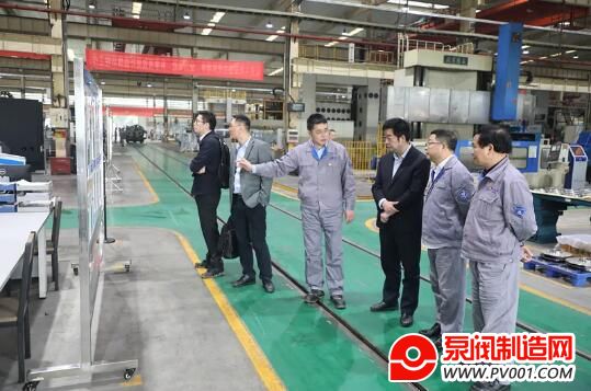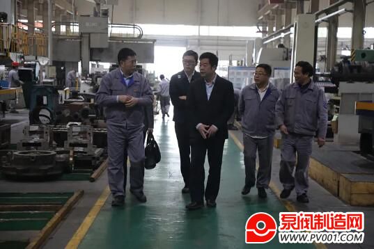 蒋总一行首先到生产车间现场进行了实地查看,详细了解了公司生产经营工作情况,沿途对生产一线职工表达了关心和问候,公司领导介绍了公司生产流程、厂区布局、在建的大型往复隔膜泵建设项目等情况,蒋总对公司现场工作给予了充分的肯定和赞扬。