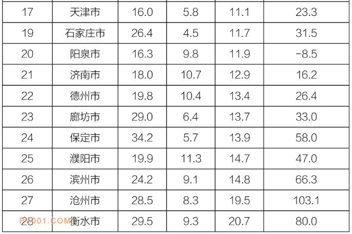 注:①按2020年3月“2+26”城市降尘量平均值从小到大进行排名。下表同。②为2020年3月降尘量平均值同比变化情况,负数表示同比下降,正数表示同比上升。