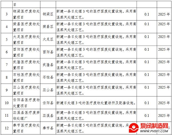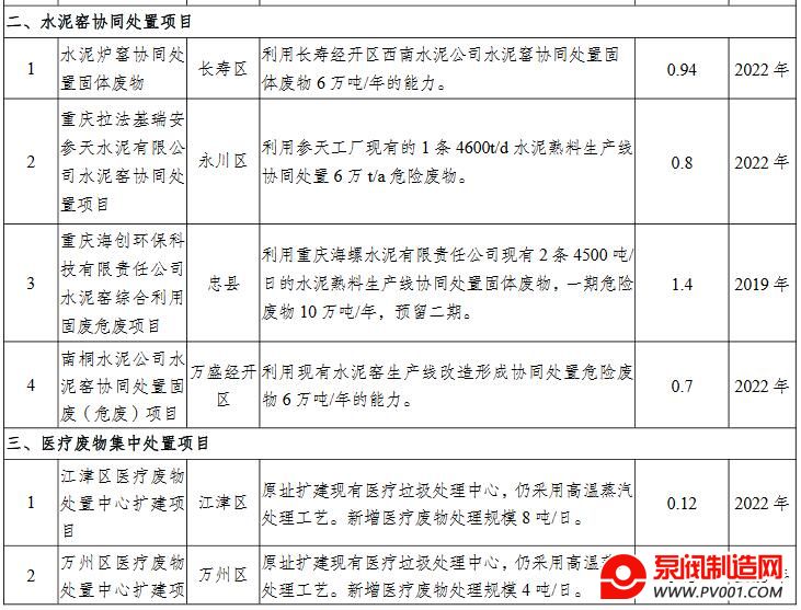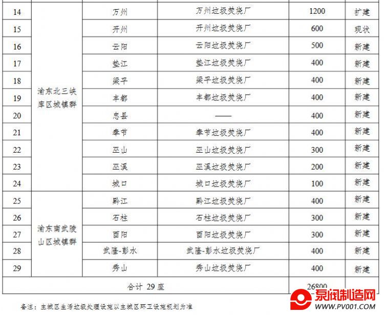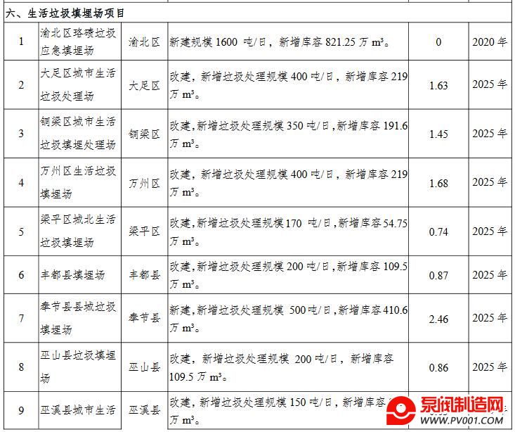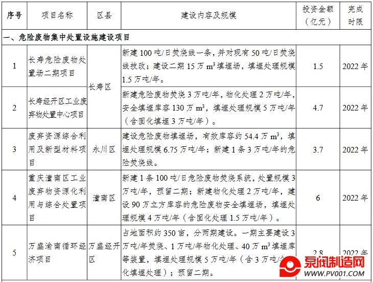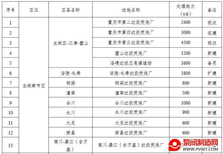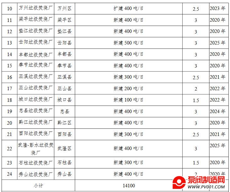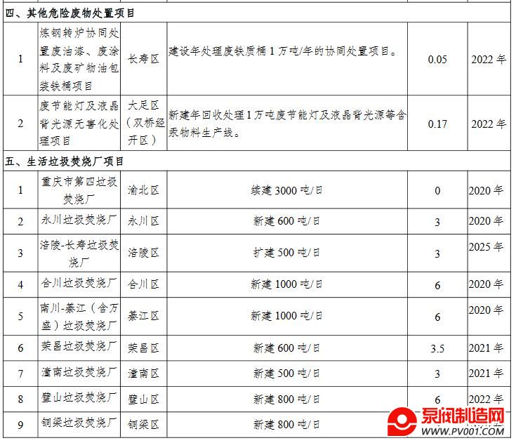 拟新、扩建24座焚烧发电厂 重庆市固体废物集中处置设施近期建设一览表