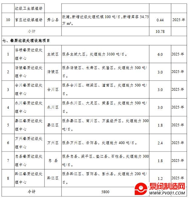 其中提出,至2025年,重庆市新建、续建、扩建24座焚烧发电厂,新增焚烧处理能力14100吨/日。其中,续建1座,处理能力3000吨/日;新建21座,处理能力10200吨/日,扩建2座,处理能力900吨/日。主城都市区新增能力8800吨/日,渝东北三峡库区城镇群新增能力3500吨/日,渝东南武陵山区城镇群新增能力1800吨/日。