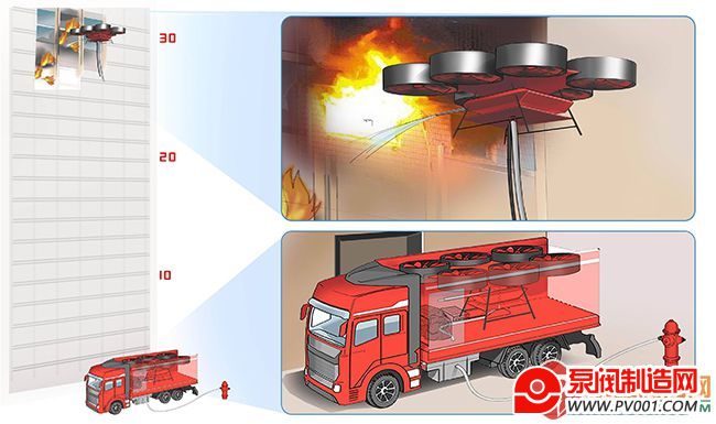 城市高空消防容易出现作业高度不够、扑灭效果不好的情况。张磊认为,在城市消防领域,相较于传统举升平台和工业级消防无人机,基于高负荷涵道风扇推进技术的重载垂直起降飞行器在作业高度、作业时间、爬升速度、喷射流量等方面有明显优势。