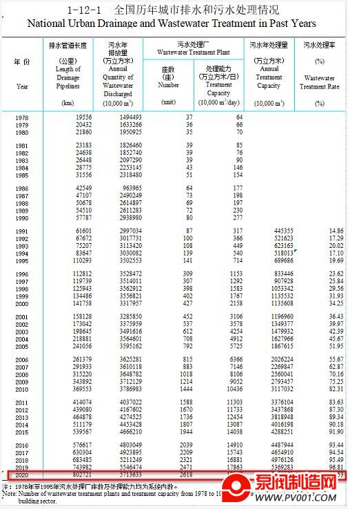 近日,住建部公布了《2020年城乡建设统计年鉴》,近日特将污水处理领域相关数据整理如下: