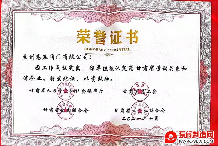 2021年12月13日,经过公司上下的不懈努力和全力争取,公司被评为甘肃省劳动关系和谐企业,正式由人社部门颁发了奖牌和证书,并将作为获奖单位代表和重点候选单位,由省市各部门继续推荐上报国家部委,参与评选全国劳动关系和谐企业。