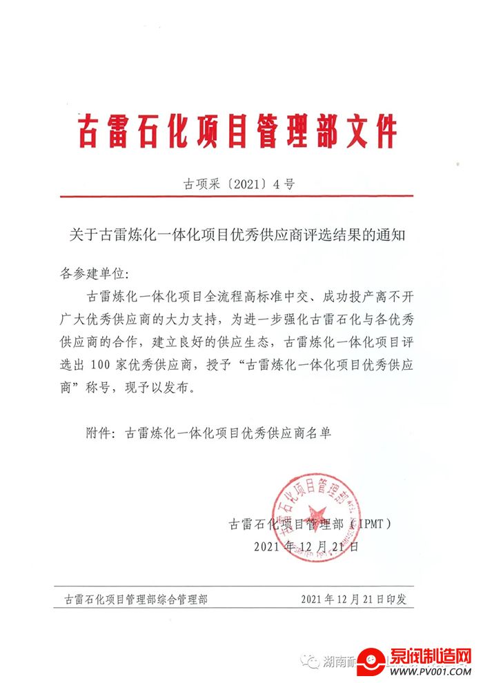 近日,耐普泵业荣获“古雷炼化一体化项目优秀供应商”称号,此荣誉是对耐普泵业精耕工业泵20年的执着精神和对设备专业性可靠性的高度认可。