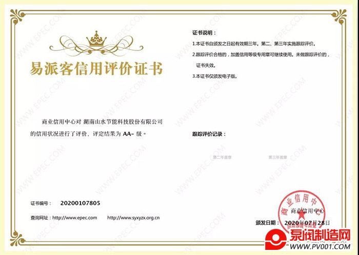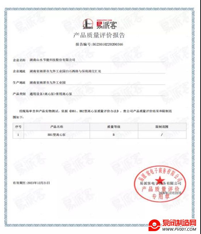 从2020年到2021年我司相继获得易派客法人信用认证等级AA-;产品质量评价(BB1型离心泵)质量等级B级;获得铸件产品质量认证承压件A级、叶轮BBB级。