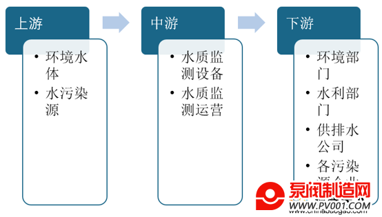 水质监测是监视和测定水体中污染物的种类、各类污染物的浓度及变化趋势,评价水质状况的过程。水质监测行业产业链上游包括各种水源,如我国地表水,包括各河流、湖泊水库、饮用水源地、城市景观河道、水利工程水,以及我国各污染行业排除的废水污水;中游包括水质监测设备和水质监测运营服务;下游包括环保部门、水利部门、供排水公司、各污染源企业等。
