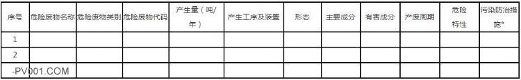 (8)表3危险废物产生概况。本表应包括产生的所有危险废物(包括自行利用处置过程中产生的废渣)的有关情况;废物名称、废物代码、废物类别:根据《国家危险废物名录》中对应的废物名称、代码和类别填写,如某化工厂在生产四氯化碳过程中产生蒸馏残渣,则废物名称为“四氯化碳生产过程中产生的蒸馏残渣”,废物代码为“261-010-11”,废物类别为“HW11精(蒸)馏残渣”;有害物质名称:废物中的有害物质名称(每种废物可包含多种有害物质);物理性状:废物在常温、常压下的物理状态,包括固态(固态废物,S)、半固态(泥态废物,SS)、液态(高浓度液态废物,L)、气态(置于容器中的气态废物,G)等;危险特性:根据《国家危险废物名录》和《危险废物鉴别标准》中规定的危害特性填写,包括“腐蚀性”“毒性”“易燃性”“反应性”和“感染性”等;本年度计划产生量:计划期限内的危险废物产生量,计量单位为吨,以升、立方米等体积计量的,应折算成重量吨;以个数作为计量单位的,除填写个数外,还应折算成重量吨;半固态危险废物(如电镀污泥等),以脱水后的干泥重量计;上年度产生量:计划期限上一年度的危险废物产生量,计量单位为吨,以升、立方米等体积计量的,应折算成重量吨;以个数作为计量单位的,除填写个数外,还应折算成重量吨;半固态危险废物(如电镀污泥等),以脱水后的干泥重量计;来源及产生工序:产生该种废物的部门、车间名称及其相应产生工段、工序名称。