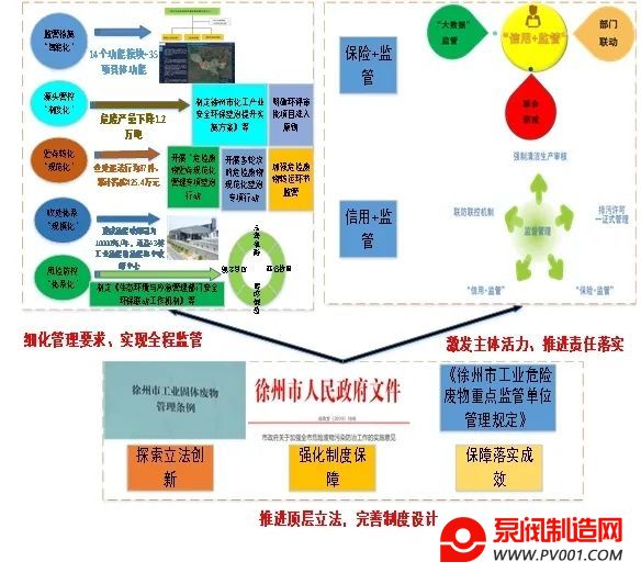 1、探索立法创新。积极探索工业固体废物综合管理地方立法工作,在全国率先颁布实施了《徐州市工业固体废物管理条例》,条例以保障公众健康,维护生态安全,促进经济社会可持续发展为主要宗旨,以工业危险废物“减量化、资源化、无害化”为原则,以强化联防联控、做优智慧监管、突出精准防控为重点,对工业危险废物产生、收集、运输、贮存、利用等全流程作出规范,扎紧织密工业危险废物管理的制度体系,为徐州市工业危险废物管理提供了基础性制度保障。