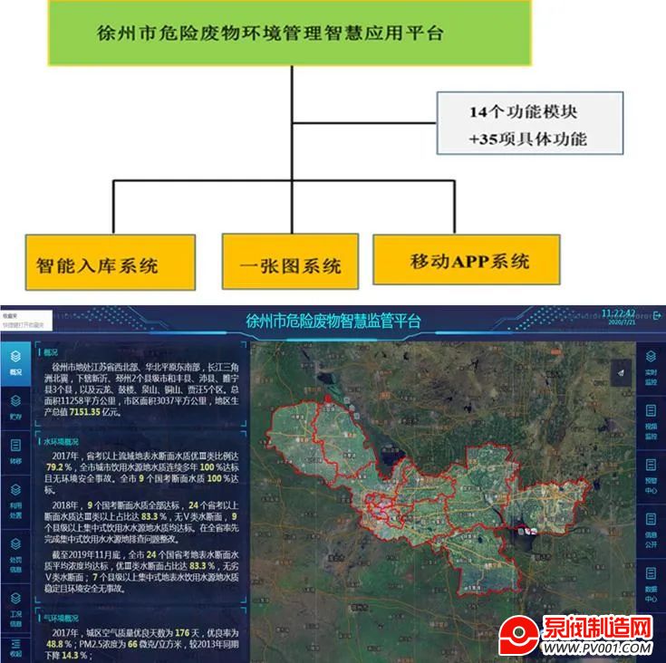 融合现代信息技术和大数据技术,以“一码通行、全程跟踪”为核心,建设“徐州市危险废物环境管理智慧应用平台”,快速掌握危险废物动态。平台引入物联网和地理信息系统技术,实现“全生命周期”可追溯可视化管理。