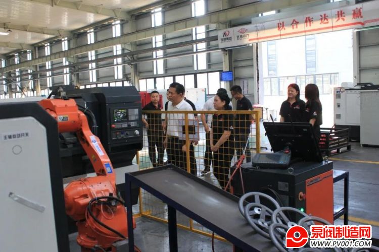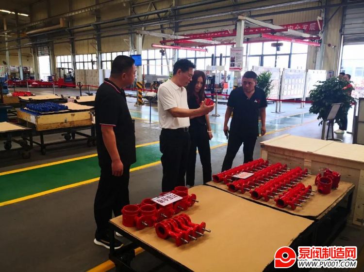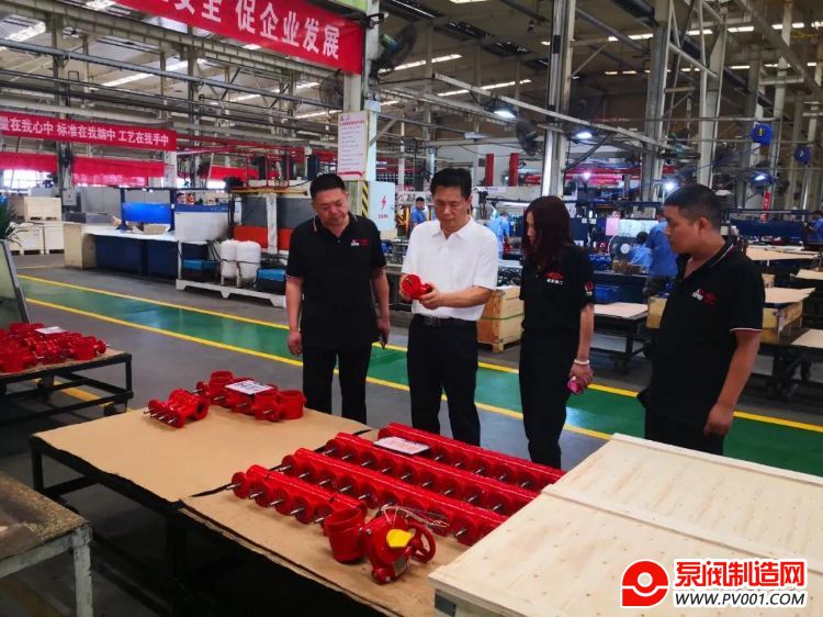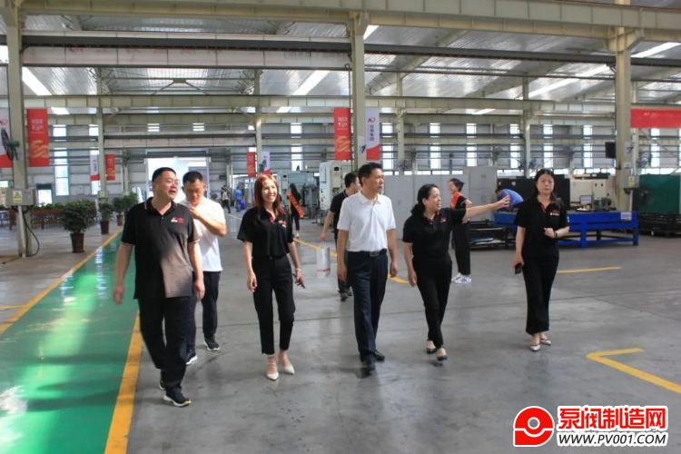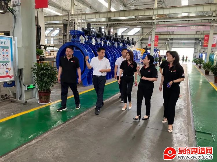宋银立秘书长在迈克阀门总经理赵桂芝等人陪同下参观生产车间