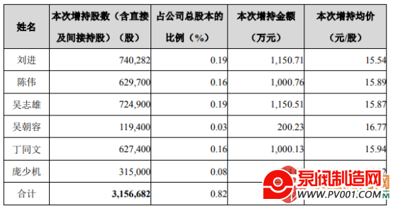 公告显示,增持前刘进、陈伟、吴志雄、吴朝容、丁同文、庞少机分别持有公司股份54,394,507股、52,793,897股、52,793,897股、997,258股、3,484,440股、3,537,737股,分别占公司普通股总股本13.99%、13.57%、13.57%、0.26%、0.90%、0.91%,本次增持后分别持有股份55,134,789股、53,423,597股、53,518,797股、1,116,658股、4,111,840股、3,852,737股,分别占公司普通股总股本比例为14.25%、13.81%、13.83%、0.29%、1.06%、1%。