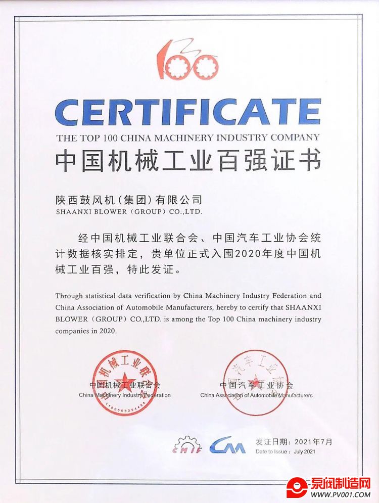 陕鼓集团入选2021年“中国机械工业百强”,排名第29名,是100强前50名中唯一一家陕西本土企业 。陕鼓集团常务副总经理牛东儒代表企业上台领奖。