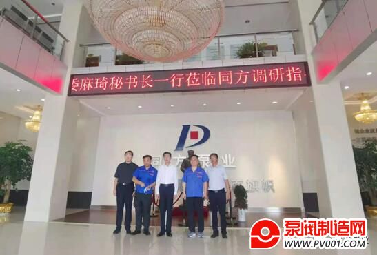 8月26日,鄂州市市委常委市委秘书长麻琦调研同方泵业,总经理黄锋接待了调研组一行,葛店开发区管委会主任高飞陪同调研。
