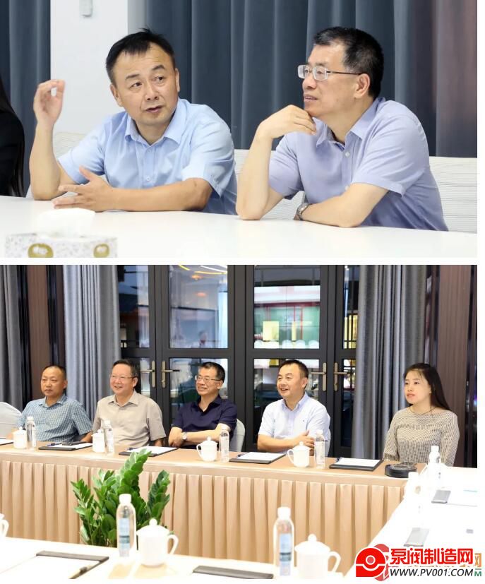 中国建筑材料流通协会会长秦占学(左三)、衢州市人大常委会主任吴国升(左二)、喜尔康董事长吴锡山(右二)等座谈中