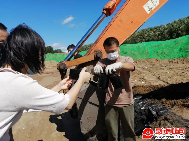 督察组随机选取2个点位,进行了4米深左右的挖掘。大型挖掘机稍稍探入地面,便掘出大量被黑水裹挟的垃圾。