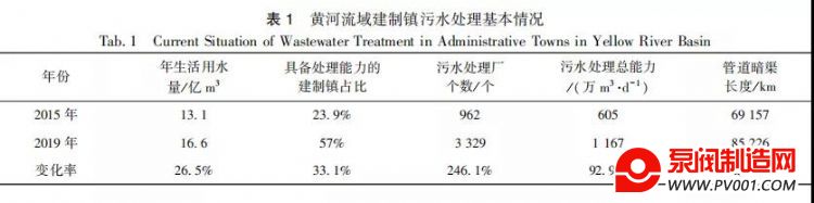 截至2019年底,沿黄9省(区)共有建制镇6683个,建成区常住人口 0.51 亿,供水普及率为87. 62%。“十三五”期间,在西部大开发、中部崛起、黄河流域生态保护和高质量发展等国家重大战略引导下,黄河流域建制镇污水处理设施建设快速推进。污水处理厂个数、对生活污水处理的建制镇 比例、 污水处理总能力等较2015年大幅提升(表1)。