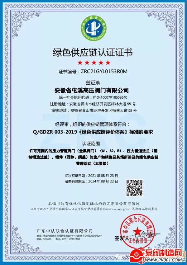 您当前的位置:中国泵阀制造网 > 资讯 > 企业资讯 > 安徽省屯溪高压阀门有限公司获得绿色供应链五星认证