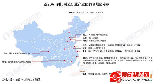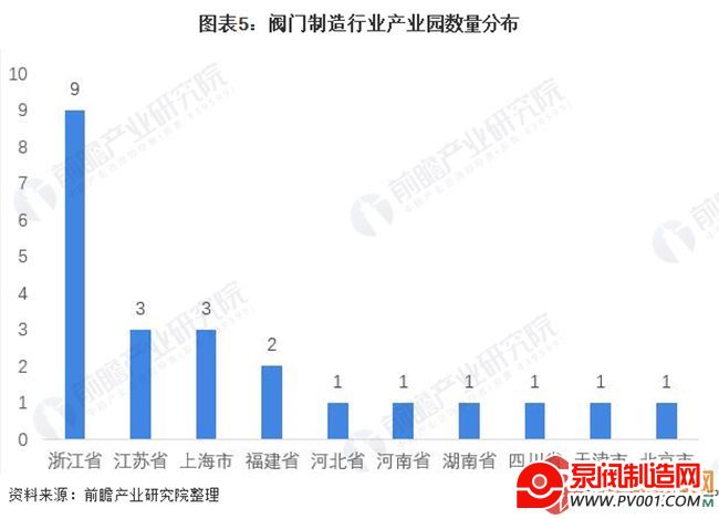 阀门制造行业产业园分布:浙江省分布最多