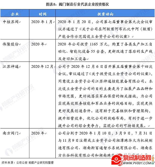 阀门制造行业代表企业最新投资方向