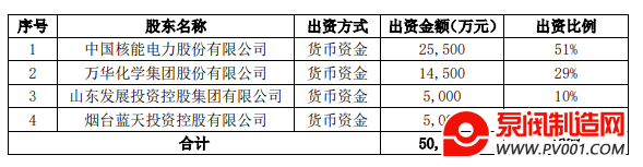 中国核电公告称,拟与万华化学集团股份有限公司(以下简称“万华化学”)、山东发展投资控股集团有限公司(以下简称“山东发展”)和烟台蓝天投资控股有限公司(以下简称“烟台蓝天控股”)共同出资设立中核山东核能有限公司(暂定名,具体以工商核准注册名称为准,以下简称“山东核能”)。