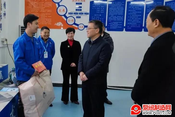 为大力弘扬劳模精神和工匠精神,把党和国家对劳模工匠的关心关爱落到实处,1月6日下午,宣城市政府市长何淳宽一行走访慰问了全国五一劳动奖章获得者、宣城市劳动模范、安徽江南泵阀集团有限公司技术员邱军强,宣城市总工会党组书记、副主席张剑平,泾县人民政府副县长张素兰,泾县总工会主席吕青年陪同。