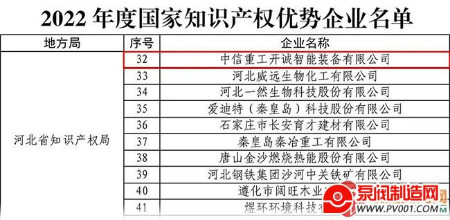 近日,国家知识产权局发布《关于2022年度国家知识产权优势企业和示范企业评定结果的公示》,中信重工开诚智能喜获“2022年度国家知识产权优势企业”称号。