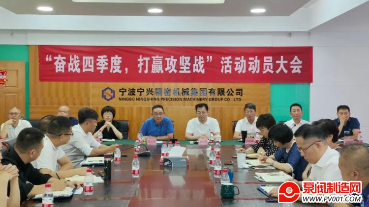 宁兴精密机械集团隆重举行“奋战四季度,打赢攻坚战”动员大会。集团经营班子成员、各子公司和集团职能部门班子成员、驻外公司业务助理以上人员参加了会议。宁兴控股常务副总裁谈正国、副总裁杨晓君、总裁办主任章慧红莅临了会议。会议以宁波本部主会场、各驻外公司分会场形式举行。